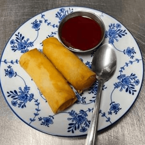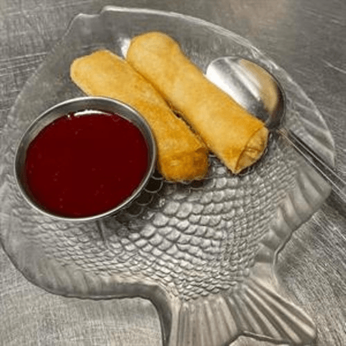 Deep-fried rice paper rolls filled with vermicelli and vegetables, served with sweet and sour sauce