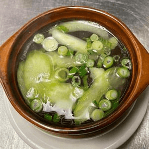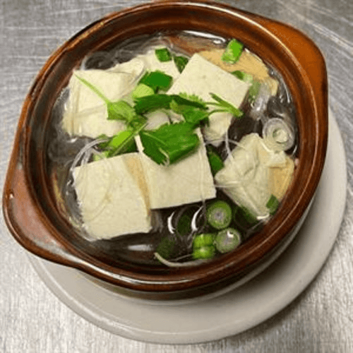 Soft tofu with vermicelli, celery and cilantro in a light broth