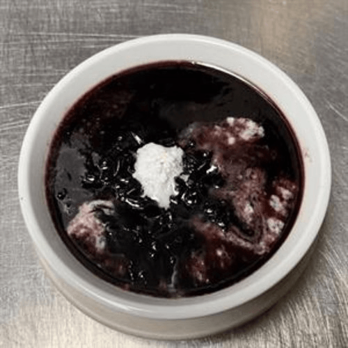 Soft black-rice dessert with coconut milk, served warm