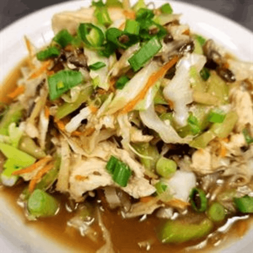 Cabbage, carrot, mushroom, and green onion stir-fried with fresh ginger